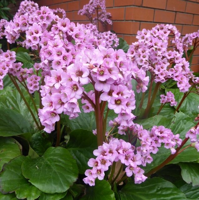 Bergenia (Himalayan creeping saxifrage) flowers. Saxifragaceae evergreen perennial plants. Native to the Himalayas, Bergenias are one of the most versatile of perennials, with attractive 'leathery' leaves and clusters of delicate flowers carried on upright spikes in winter to early spring.